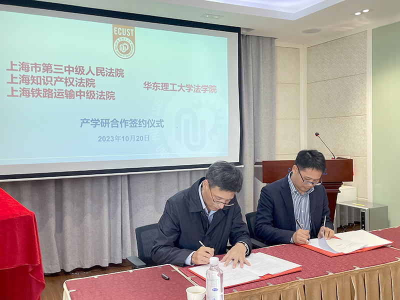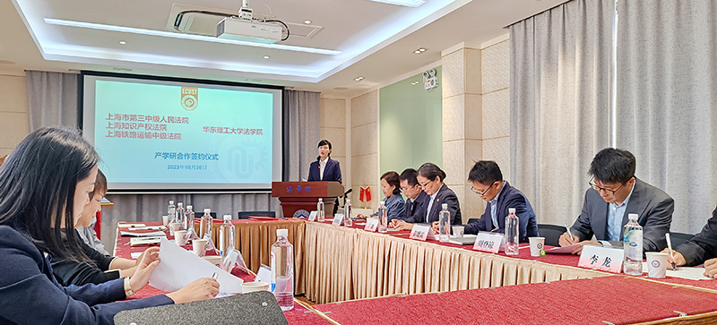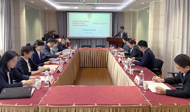 为贯彻习近平总书记关于法治建设和法治人才培养指示精神,推动“上海法院院校合作共育高素质法治人才项目”落实落地,10月20日下午,上海三中院(知产法院、铁路中院)与华东理工大学法学院合作协议签署暨实践教学基地揭牌活动在华东理工大学徐汇校区举行。上海三中院(知产法院、铁路中院)党组成员、副院长黎淑兰,华东理工大学法学院院长彭德雷出席活动并致辞。黎淑兰副院长与华东理工大学法学院党委书记丁灏共同为实践教学基地揭牌。党组成员、政治部主任奚雪峰与彭德雷院长代表双方签署合作协议,上海三中院(知产法院、铁路中院)、华东理工大学法学院相关同志参加座谈。